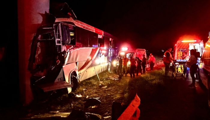 Durante la madrugada de este jueves 16 de abril de 2026, se registró un trágico accidente en la salida a Delicias, a la altura del kilómetro 208 del Libramiento Oriente, donde un camión de pasajeros de la empresa Rhino se impactó contra una columna de concreto.