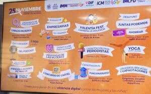 En el ámbito empresarial, el lunes 24 se llevará a cabo el desayuno “Juntas podemos ahorrar”, enfocado en educación financiera para mujeres, y el jueves 27 el seminario “Empresarias: No más violencia”, en el Hotel Sheraton.