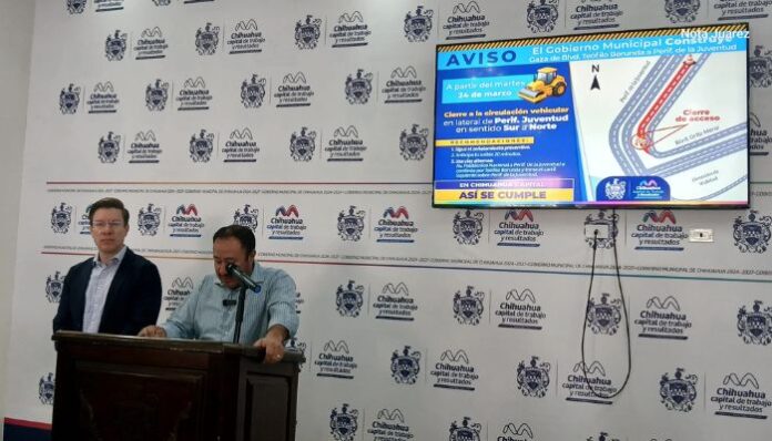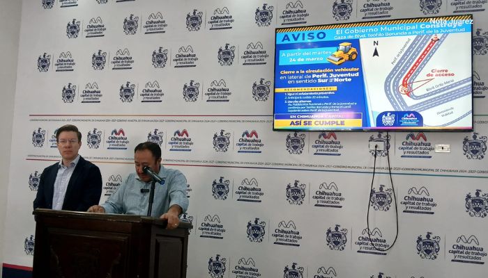 Chihuahua, Chih.- 23 de Marzo del 2026 – El Gobierno Municipal, a través de la Dirección de Obras Públicas, dio a conocer el cierre temporal de la lateral intermedia del Periférico de la Juventud en sentido del bulevar Ortiz Mena hacia el norte, debido a trabajos relacionados con la construcción de la gaza de incorporación en el cruce con la avenida Teófilo Borunda.