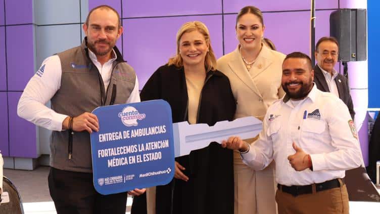Chihuahua,Chih.-La gobernadora María Eugenia Campos Galván encabezó la entrega de ambulancias para fortalecer la atención médica en nueve municipios del estado, como parte de la estrategia para mejorar los servicios de salud en zonas urbanas y rurales.