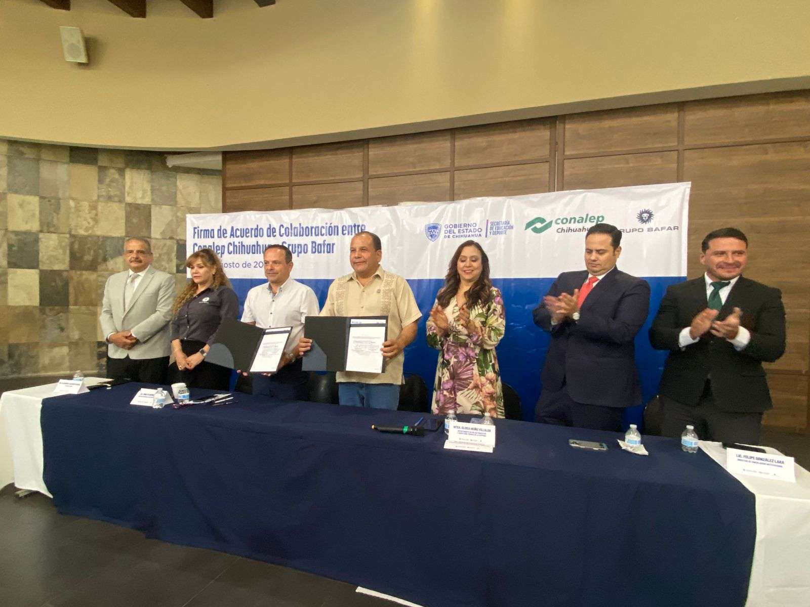 Chihuahua, Chih.- El Conalep Chihuahua y Grupo Bafar firmaron un convenio de colaboración con el objetivo de fortalecer la formación académica y profesional de las y los estudiantes, a través del programa dual que contempla certificaciones, prácticas profesionales y una bolsa de trabajo.