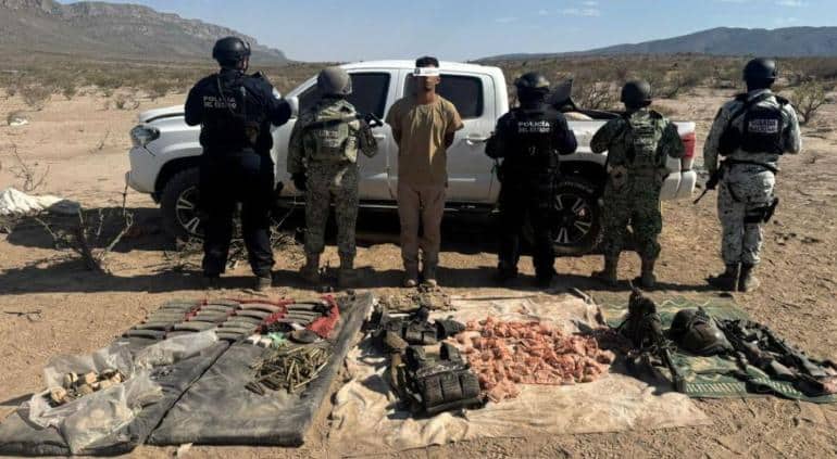 Chihuahua, Chih.— En un operativo conjunto, elementos de la Secretaría de la Defensa Nacional (Sedena) y la Guardia Nacional detuvieron a un hombre que se trasladaba en una camioneta con blindaje artesanal y armamento militar en el municipio fronterizo de Ojinaga.