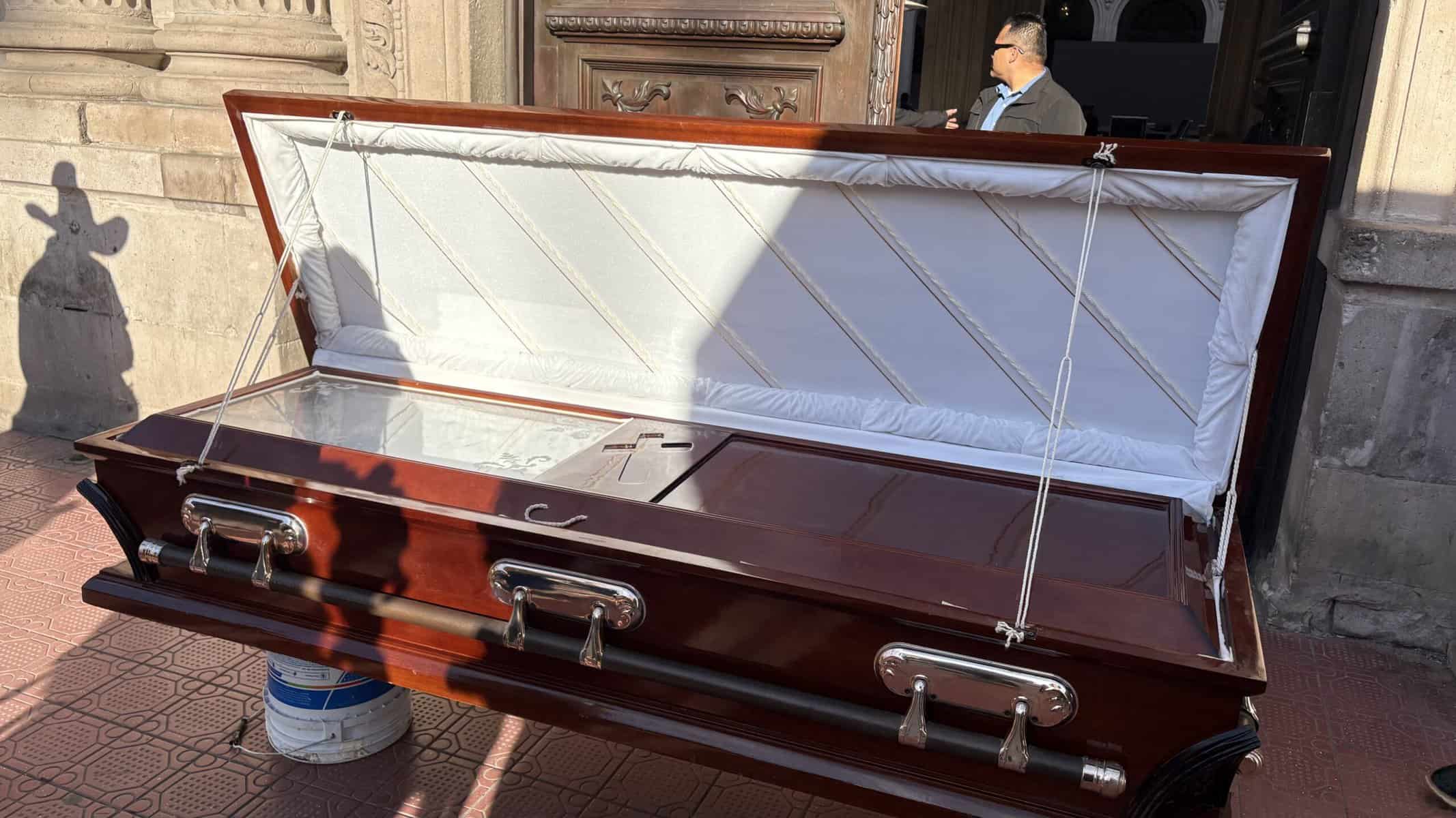 Integrantes de la organización Retén Ciudadano realizaron una protesta frente a Palacio de Gobierno bajo el lema “El diálogo está muerto”, donde colocaron un ataúd en uno de los accesos al edificio del Poder Ejecutivo como símbolo de inconformidad.