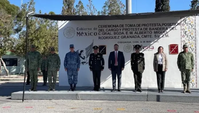 Chihuahua, 6 de mayo de 2025 — En una ceremonia oficial realizada en las instalaciones del 23º Batallón de Infantería en la ciudad de Chihuahua, el General de Brigada del Estado Mayor, Alberto Miguel Rodríguez Granada, tomó posesión como nuevo comandante de la 5a Zona Militar, en reemplazo del General Rubén Zamudio Matías.