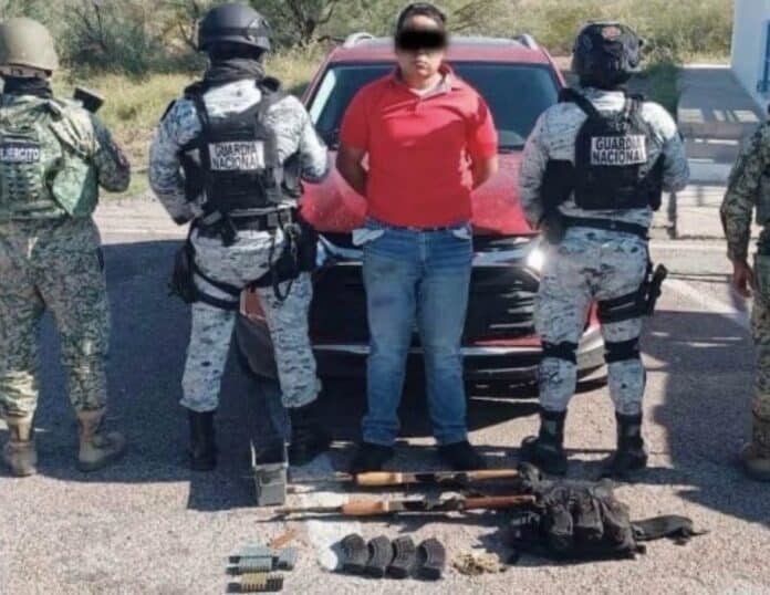 El joven, de 21 años de edad, fue detenido el pasado martes durante un operativo conjunto de la Secretaría de la Defensa Nacional y la Guardia Nacional, en el que se le aseguraron dos armas largas, un chaleco antibalas y varios cartuchos útiles.