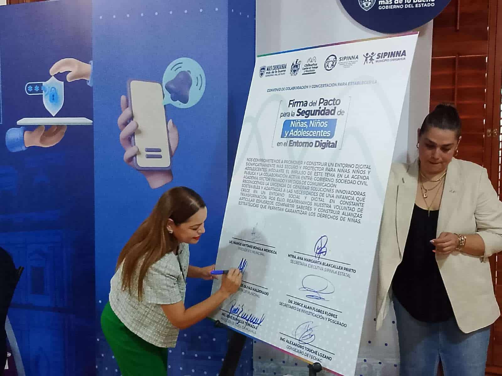 Chihuahua, Chih.- Con la participación de autoridades municipales, instituciones educativas y familias, este jueves se formalizó el Pacto para la Seguridad de Niñas, Niños y Adolescentes en el Entorno Digital, una estrategia integral que busca proteger a la infancia y juventud ante los riesgos del mundo en línea.