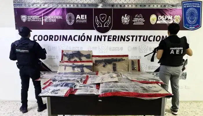*Chihuahua, Chih.* – 06 de junio de 2025. – La Fiscalía de Distrito Zona Centro realizó operativos simultáneos en tres domicilios ubicados en las colonias El Porvenir y Los Llanos, en la ciudad de Chihuahua, logrando el aseguramiento de un importante arsenal de armas de fuego y municiones. Estas acciones forman parte de las investigaciones en curso relacionadas con recientes hechos violentos en la región.
