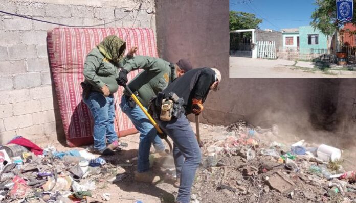 Ciudad Juárez, Chih., 25 de marzo de 2026.– En seguimiento a una carpeta de investigación de la Unidad Especializada en Personas Ausentes y/o no Localizadas, la Fiscalía de Distrito Zona Norte cumplimentó ayer una orden de cateo en un domicilio del fraccionamiento Riberas del Bravo, donde se localizó una fosa clandestina en el patio trasero.