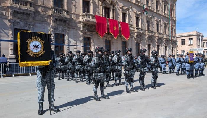 El contingente castrense estuvo conformado por 775 elementos del Ejército Mexicano, Fuerza Aérea y Guardia Nacional, quienes desfilaron con disciplina y coordinación. La exhibición incluyó vehículos blindados DN11, unidades tácticas especializadas y el sobrevuelo de cuatro aeronaves, demostrando la capacidad operativa de las fuerzas armadas.