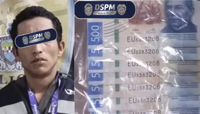 Chihuahua, Chih., 13 de mayo de 2025.- Un joven de 25 años fue detenido por agentes municipales en la ciudad de Chihuahua tras ser sorprendido en posesión de varios billetes falsificados de 500 pesos, en un hecho que ocurrió en la zona oriente de la ciudad.