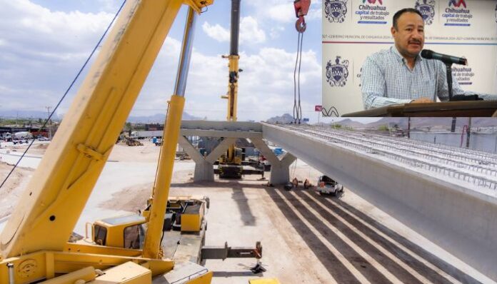 Chihuahua, Chih.- El director de Obras Públicas, Carlos Rivas, informó que la construcción del puente vehicular en la intersección de Los Nogales e Industrias alcanza ya un 55% de progreso.