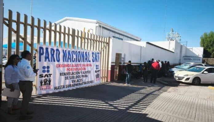 Chihuahua, Chih.— Las oficinas del Servicio de Administración Tributaria (SAT) ubicadas en el cruce de las calles Pino y Cosmos retomaron sus actividades este miércoles, luego del paro nacional realizado por personal administrativo en demanda de un ajuste salarial que, según denunciaron, les fue negado al personal de enlace y confianza.