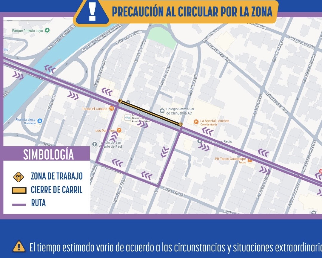 Las labores se realizarán en sentido de la avenida Zarco hacia Teófilo Borunda, lo que implicará una reducción en la circulación vehicular durante el fin de semana, con previsión de concluir el domingo 26 de abril.