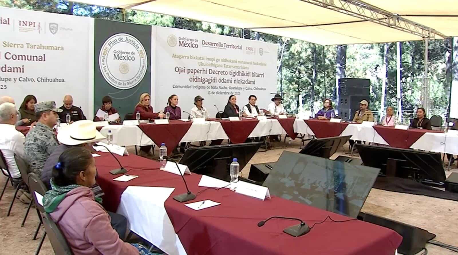 La entrega del decreto reconoce legalmente la propiedad comunal del territorio ódami, fortaleciendo la certeza jurídica sobre sus tierras y reafirmando el compromiso de los gobiernos federal y estatal con los pueblos originarios de Chihuahua.